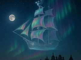 Необычные образы северной природы вдохновили авторов проекта «Необычная Россия» на создание нового фантазийного сюжета. В их новой цифровой работе над Соловецкими островами плывёт «небесная ладья» — корабль, сотканный из света, тумана и сияния.