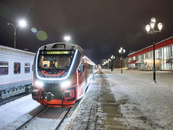 В Поморье в январе продолжит курсировать по пригородным маршрутам по-новогоднему украшенный рельсовый автобус РА-3 «Орлан».