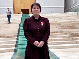 В честь Дня работника культуры в лектории Главного штаба Государственного Эрмитажа состоялась торжественная церемония награждения жительницы Архангельска.