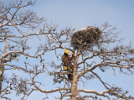 Специалисты национального парка «Онежское Поморье» вместе с приглашённым орнитологом-экспертом Мирославом Бабушкиным устанавливают фотоловушки у гнёзд редкой хищной птицы — скопы. Это необходимо для изучения жизни пернатых после зимовки в Африке и их адаптации к суровым условиям Севера.