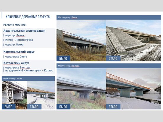 Объект находится на 61‑м километре автодороги Архангельск – Белогорский – Пинега – Кимжа – Мезень и обновляется в рамках областного проекта «Региональная и местная дорожная сеть».