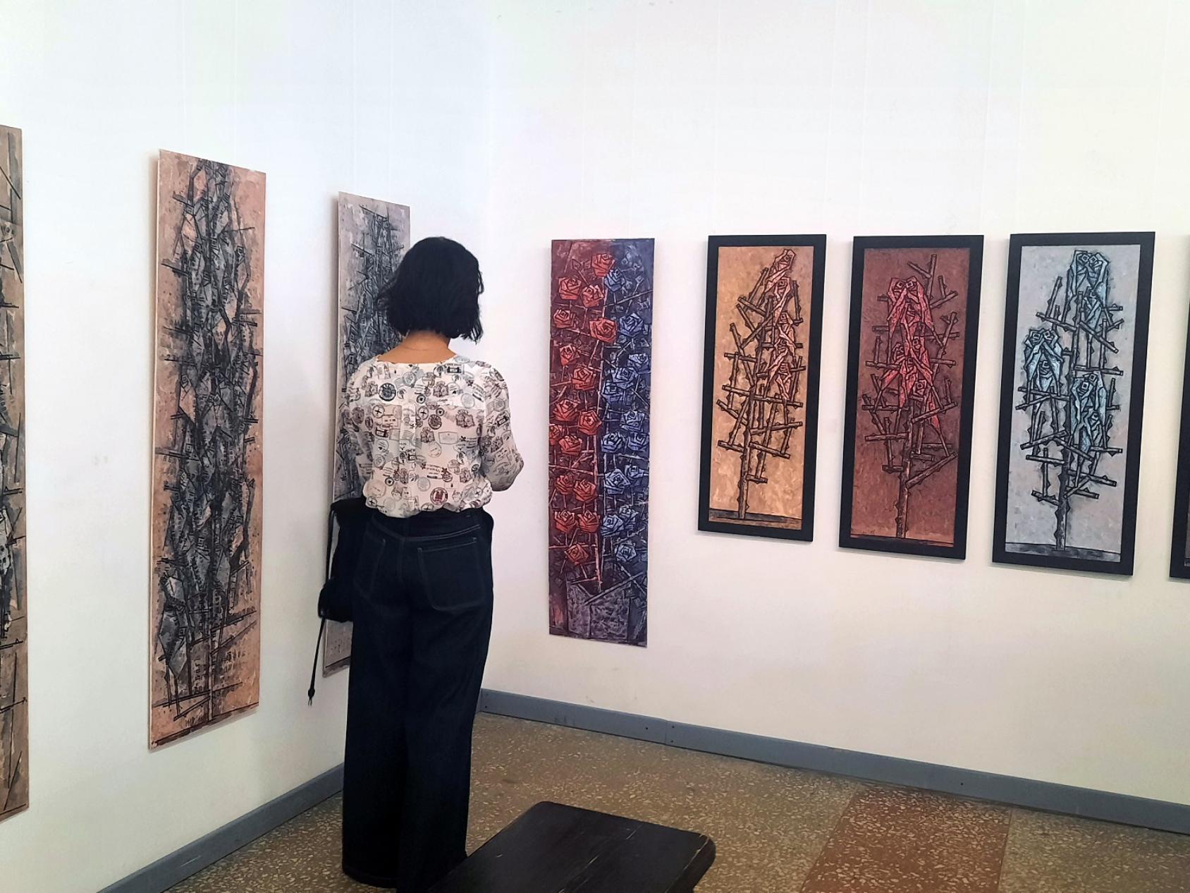 Но эту выставку надо обойти несколько раз. Сначала быстро — работ много, какие‑то идут сериями, скользнуть глазом — и это будет первое и общее впечатление. Оно само по себе так и останется. Это что‑то сродни разноголосице мелодий, которые зазвучали одновременно. Запутали и оглушили. Теперь пришло время распутать и послушать «голос» каждого цветка.
