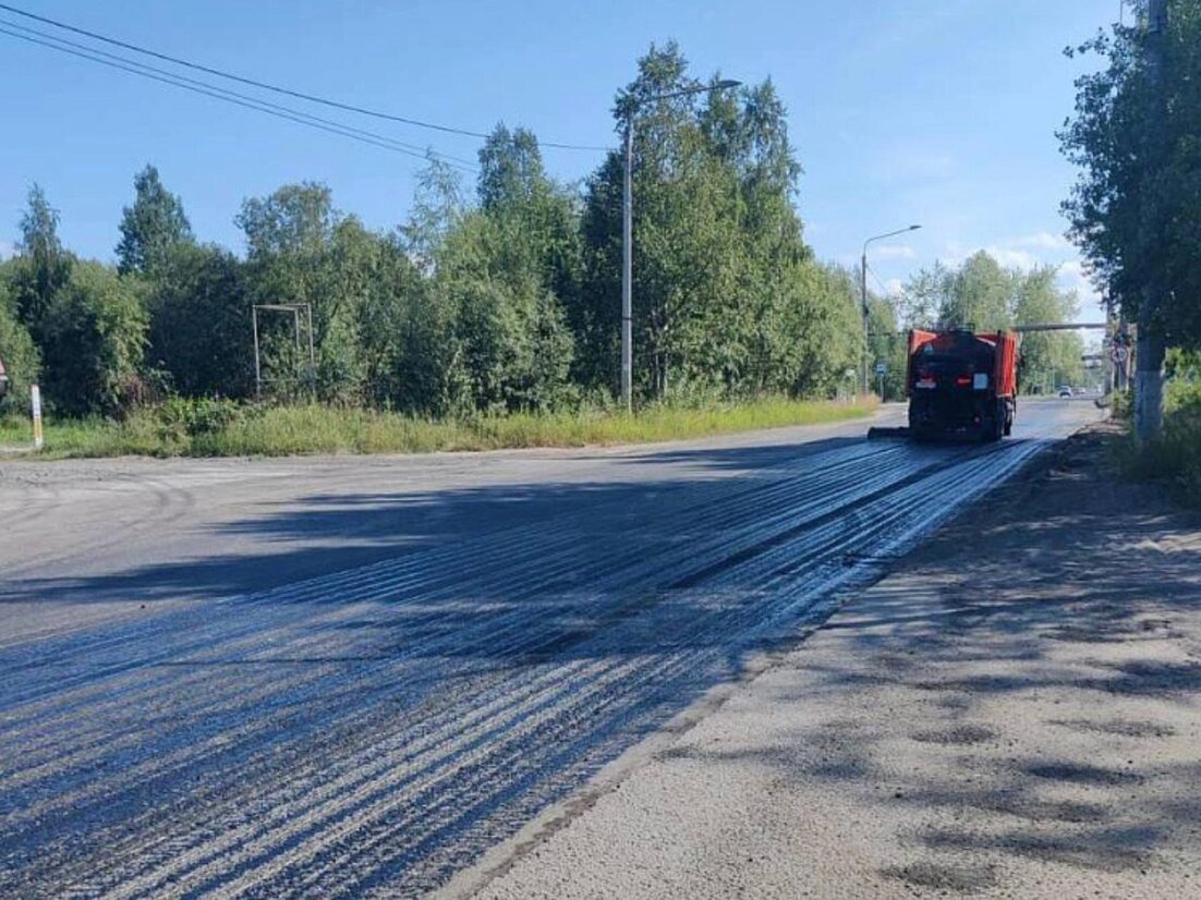 В Архангельске дорожники завершают укладку верхнего слоя асфальта на улице Советской