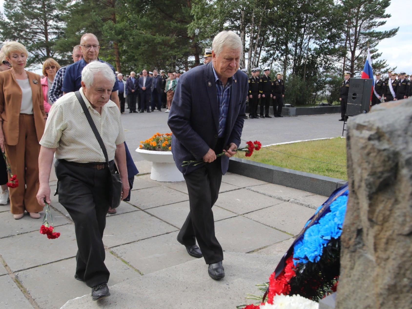 В траурном мероприятии также приняли участие командир Краснознаменной Беломорской военно-морской базы контр-адмирал Дмитрий Смирнов, председатель Совета депутатов Михаил Старожилов, исполняющий обязанности первого заместителя генерального директора АО «ПО „Севмаш“ Денис Долженков и помощник генерального директора, начальник управления делами АО „ЦС ‚Звёздочка‘ Геннадий Таран.