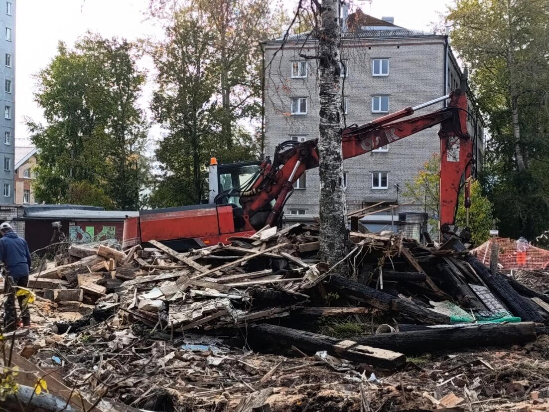 В Архангельске демонтировали расселённый дом на проспекте Ломоносова, 55, пострадавший от пожара в конце августа.
