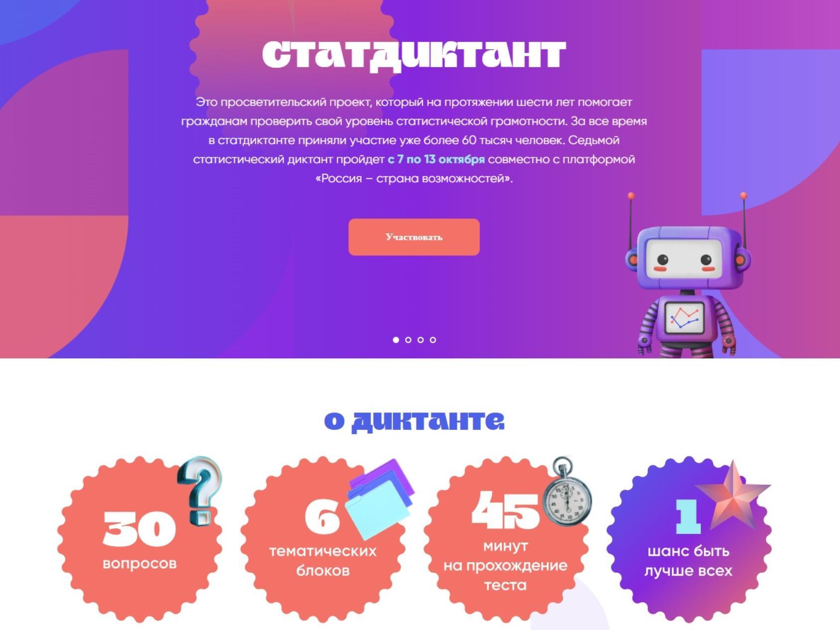 Проект существует уже шесть лет и помогает гражданам проверить уровень своей статистической грамотности. За всё время диктант прошли более 60 тысяч человек.