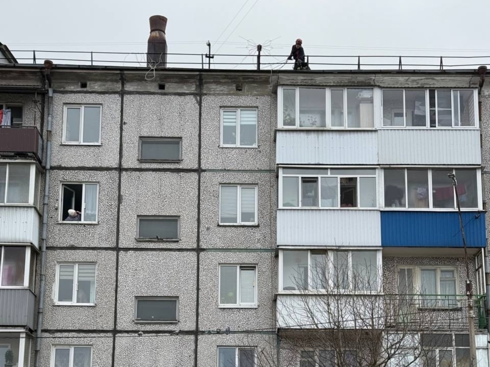 По словам очевидцев, животное — бездомное, и каким образом оно оказалось на такой высоте, никто не знает.