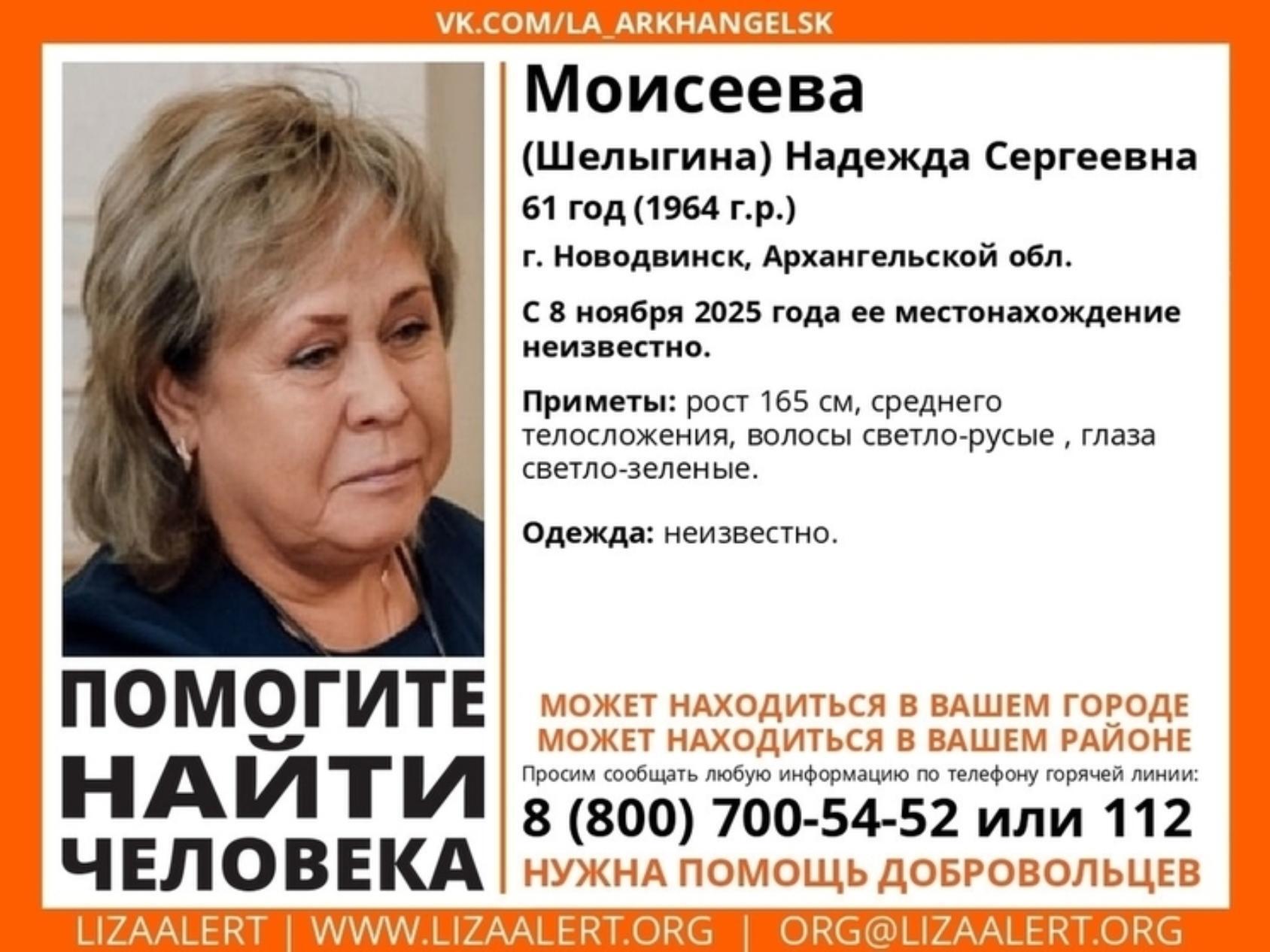 Информацию о розыске распространила пресс-служба поискового отряда «ЛизаАлерт» Архангельской области.