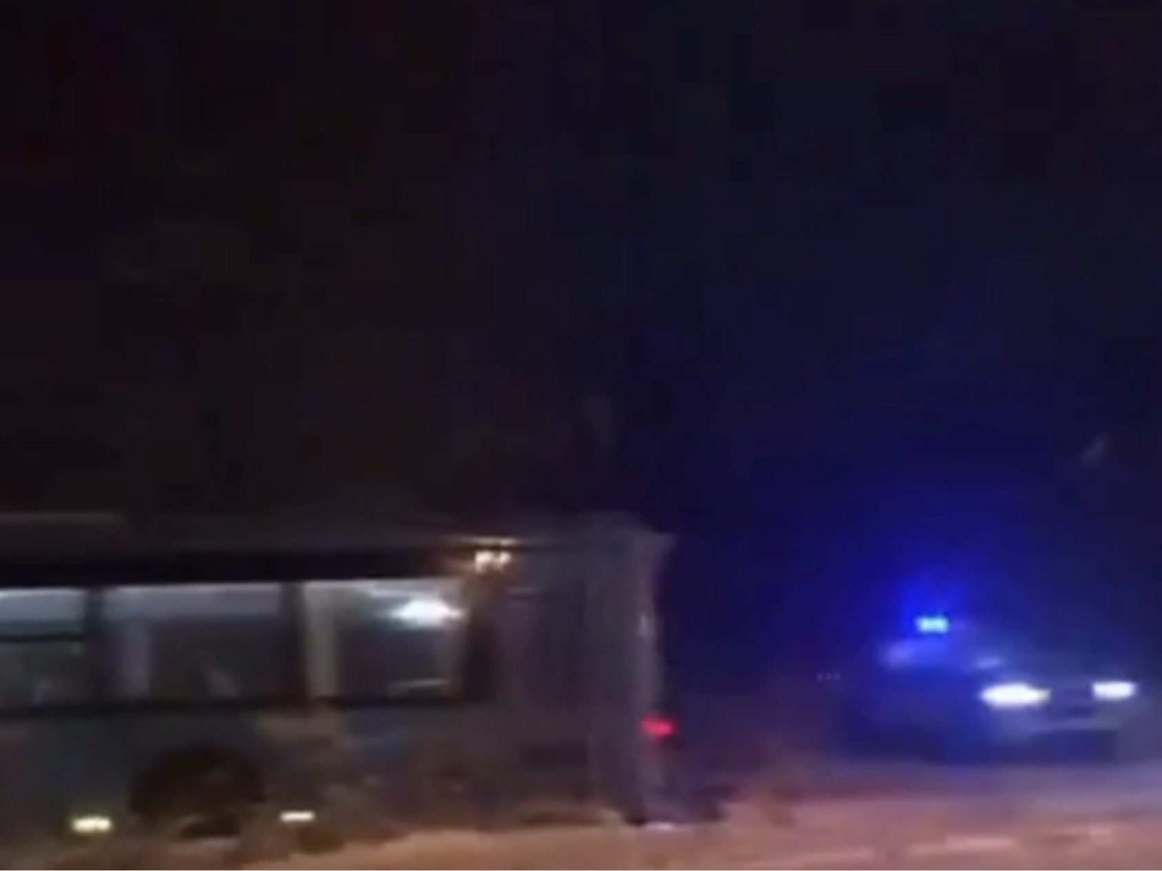 Видео с места происшествия появилось в одном из городских телеграм-каналов около полуночи. На кадрах видно, что рядом с автобусом стоит легковой автомобиль, также получивший повреждения в результате ДТП.