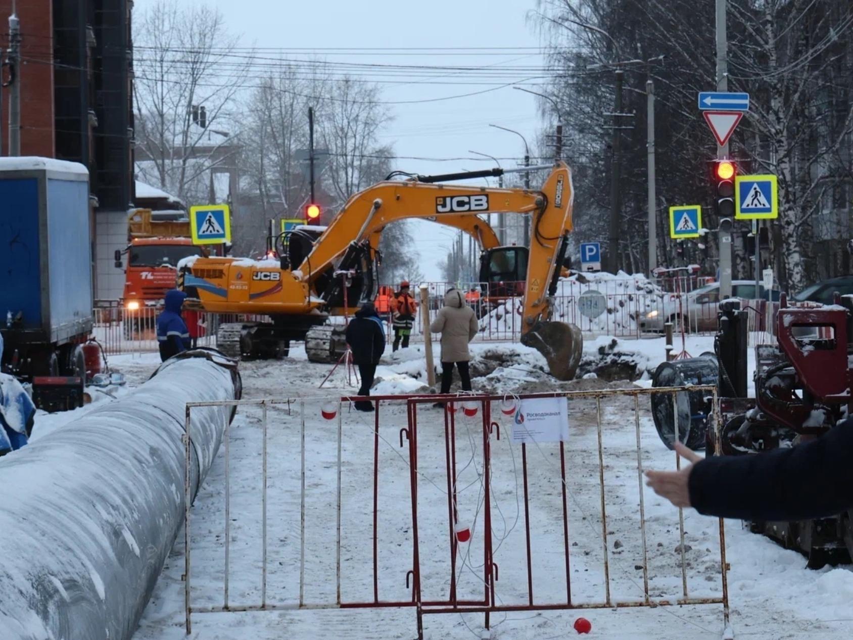 Подготовительные работы на месте аварии уже завершены силами «РВК-Архангельск». Сегодня специалисты приступают к укладке 50 метров новой трубы. Ремонт проводится методом горизонтально направленного бурения под проспектом Ломоносова, что позволяет сохранить движение транспорта без перекрытий.