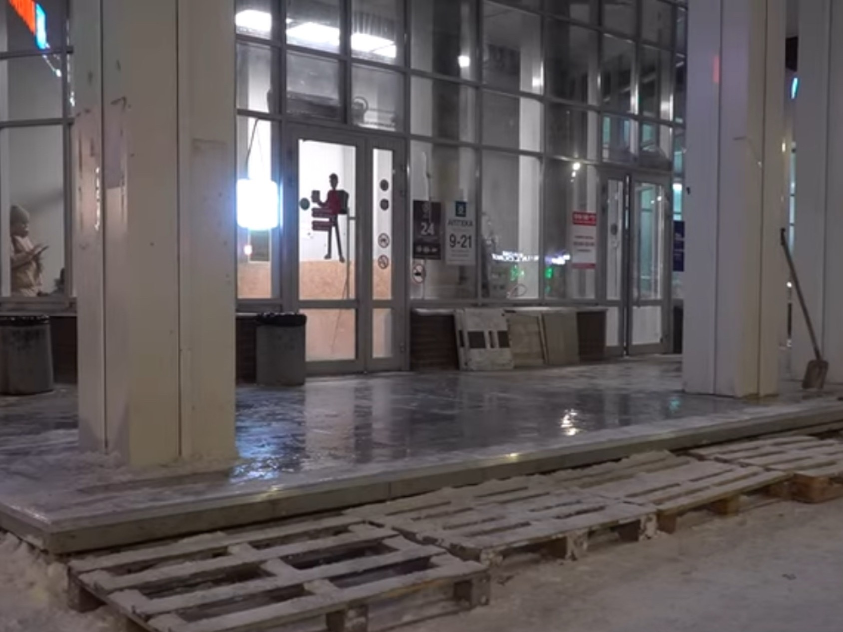 Представитель собственника коммерческих помещений Максим Леонтьев сообщил, что крыльцо оборудовано системой подогрева.