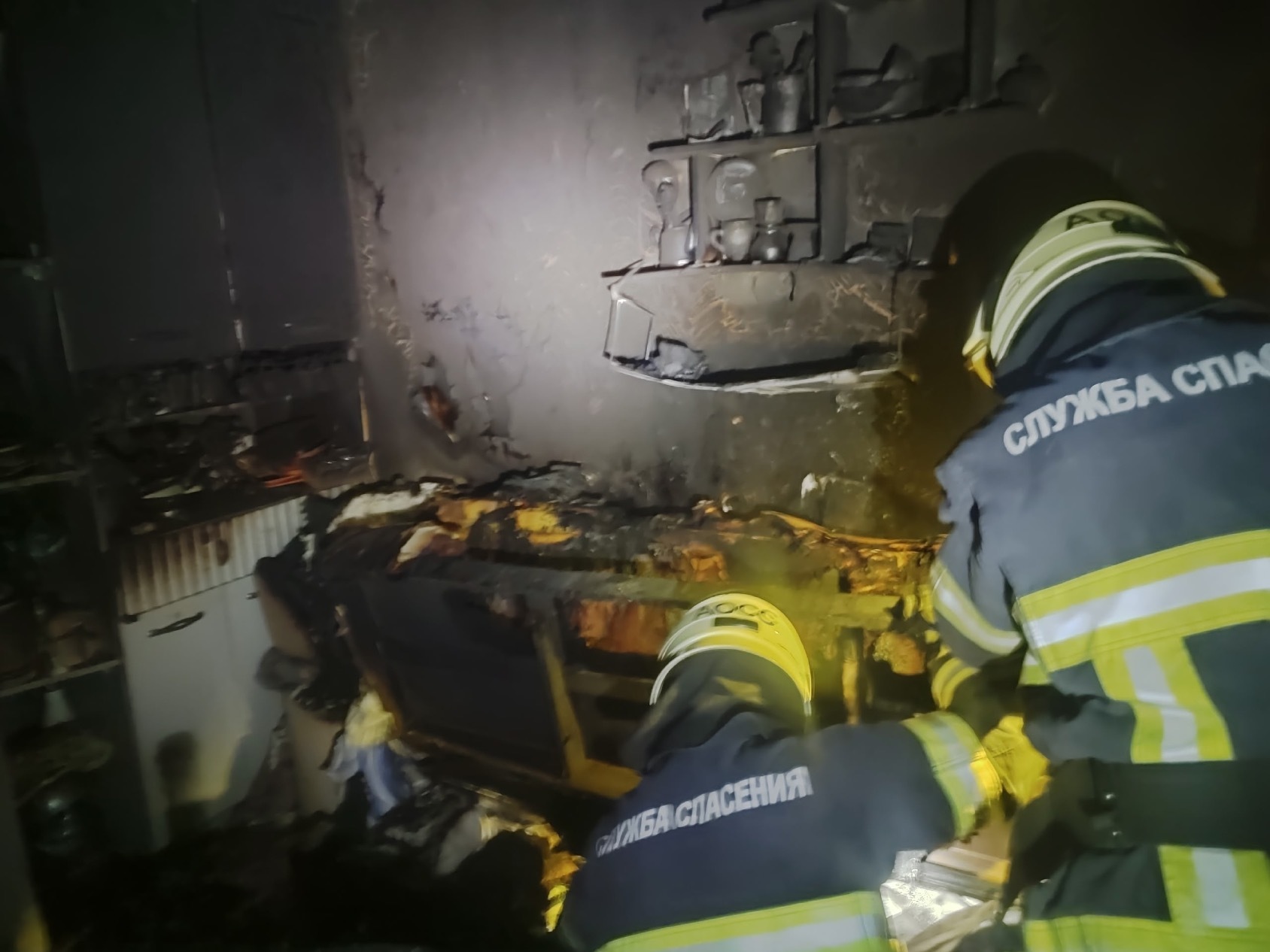 Очаг возгорания находился на кухне и был оперативно ликвидирован. В результате пожара кухня значительно повреждена огнём, квартира закопчена по всей площади. От госпитализации женщина отказалась.