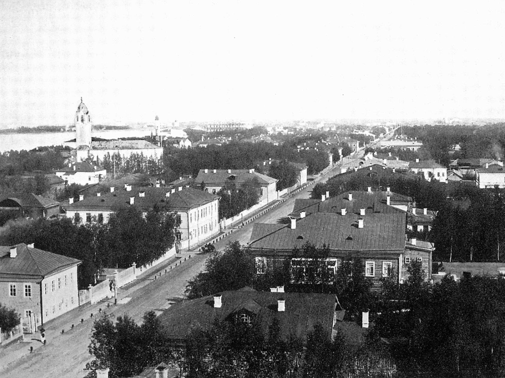 До русской революции на Троицком проспекте располагались главные общественные и административные здания города и губернии: дом губернатора, Губернские присутственные места, Городская дума, пожарная часть с каланчой и полицией, мужская и женская гимназии, Коммерческое собрание. После революции Троицкий проспект переименовали в проспект Павлина Виноградова, и на нём появились Дворец коммунизма (ныне – драмтеатр), Дом Советов, Дом связи, Государственный банк СССР, магазин «серый горт» (от «городская торговля») – предтеча современных супермаркетов. Это на углу Поморской и Троицкого, где сейчас кафе «Полина».