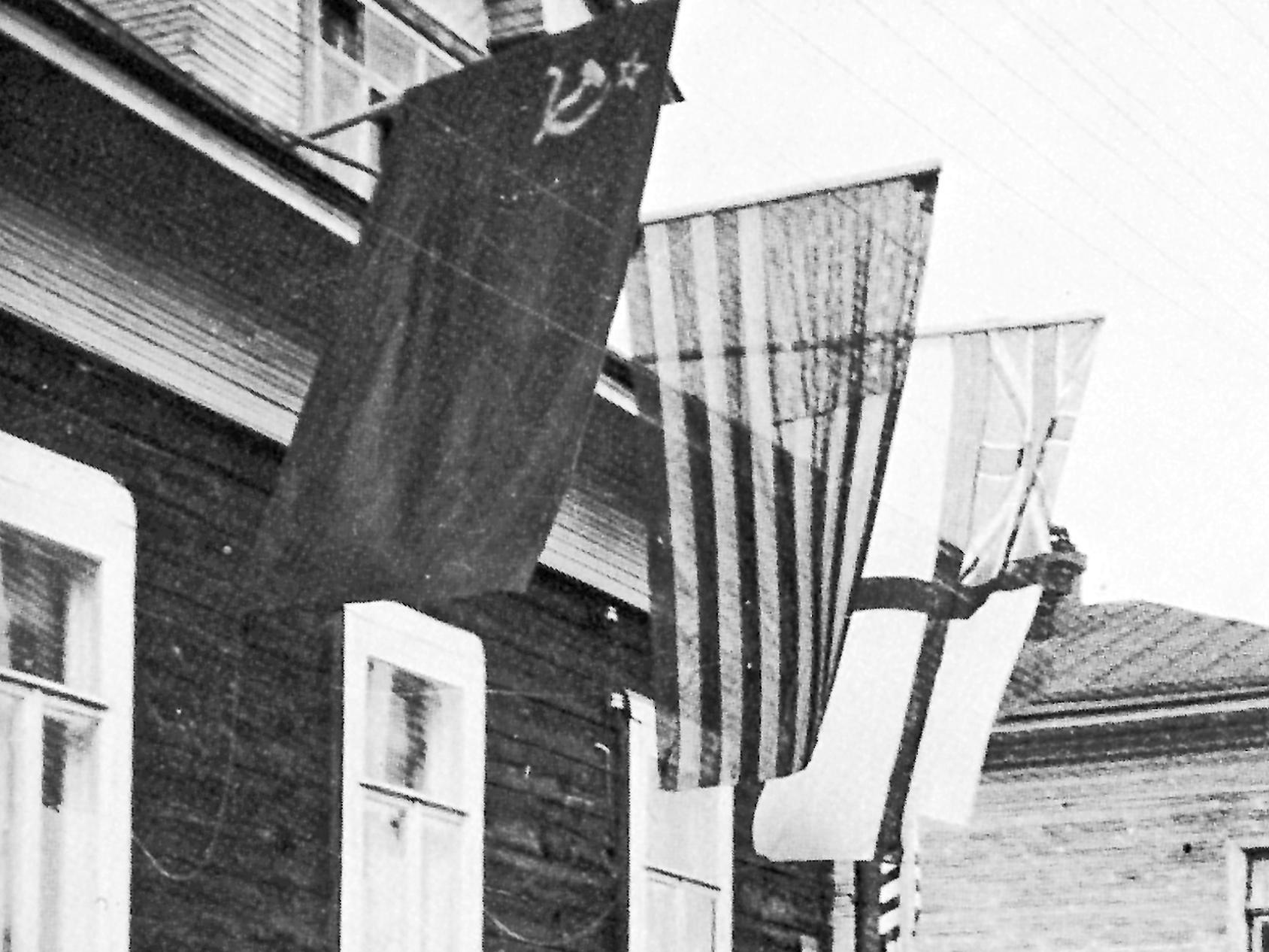 В годы войны на улицах Архангельска звучала разноязычная речь. Иностранцев привлекал трофейный танк времён Гражданской войны, который и сейчас на Троицком. Они разглядывали его сквозь щели досок футляра, которым он был закрыт. В медицинском институте, где работала моя мама, я присутствовал при раздаче гуманитарной помощи – вещей, присланных из‑за океана. Маме досталось красное пальто, которое тут же было продано. Ходить в таком пальто, когда все ходили только в чёрном, было невозможно. Ещё память сохранила в ту чёрно-белую эпоху кино фантастически красивый цветной фильм «Бемби» на новогоднем утреннике в Интерклубе.