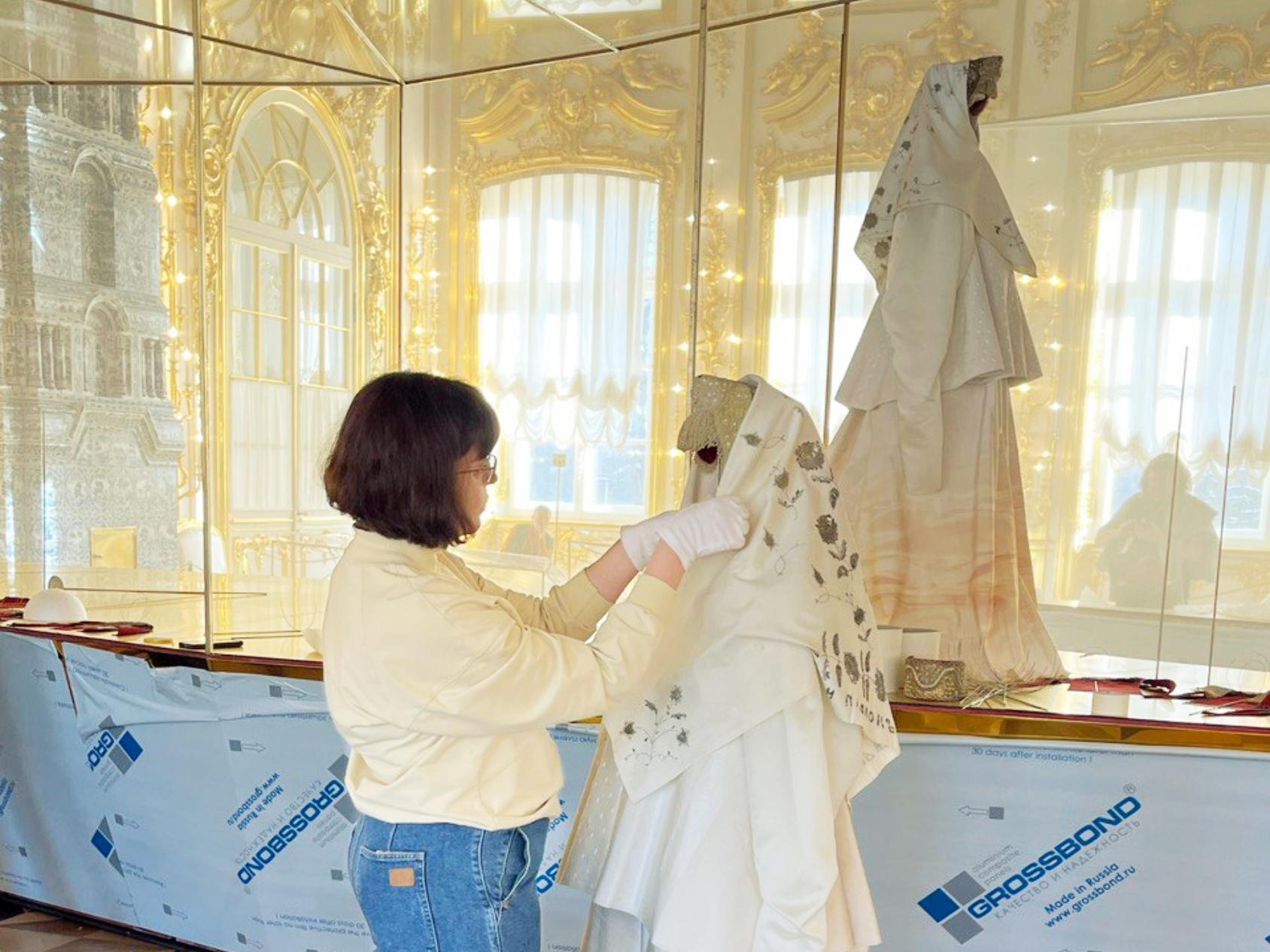 Сотрудники Каргопольского историко-архитектурного музея сообщили, что предметы, которые будут представлены на выставке, прекрасно перенесли транспортировку и постепенно осваиваются в выставочных пространствах Екатерининского дворца. О том, как проходил монтаж этой особо ценной выставки, они рассказали в социальных сетях: «Большую часть экспонатов уже разместили в витринах и на манекенах, остальные ждут своей очереди. Каждый предмет на выставке уникален и неповторим, и существует только в единственном экземпляре. Ведь каждый золотный плат, кокошник, сорока или перевязка изготавливались нашими северными мастерицами вручную на заказ, поэтому невозможно найти два абсолютно одинаковых образца.