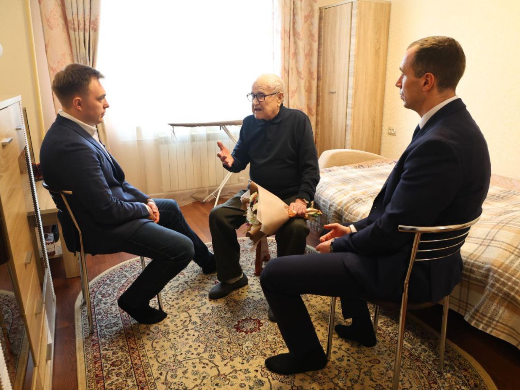 Первым, к кому заглянули организаторы акции «Мы помним!», стал участник Великой Отечественной войны Серапион Арсеньевич Галицин. Накануне ему исполнилось 99 лет. Ветеран тепло пообщался с гостями и напутствовал их на дальнейшие добрые дела.