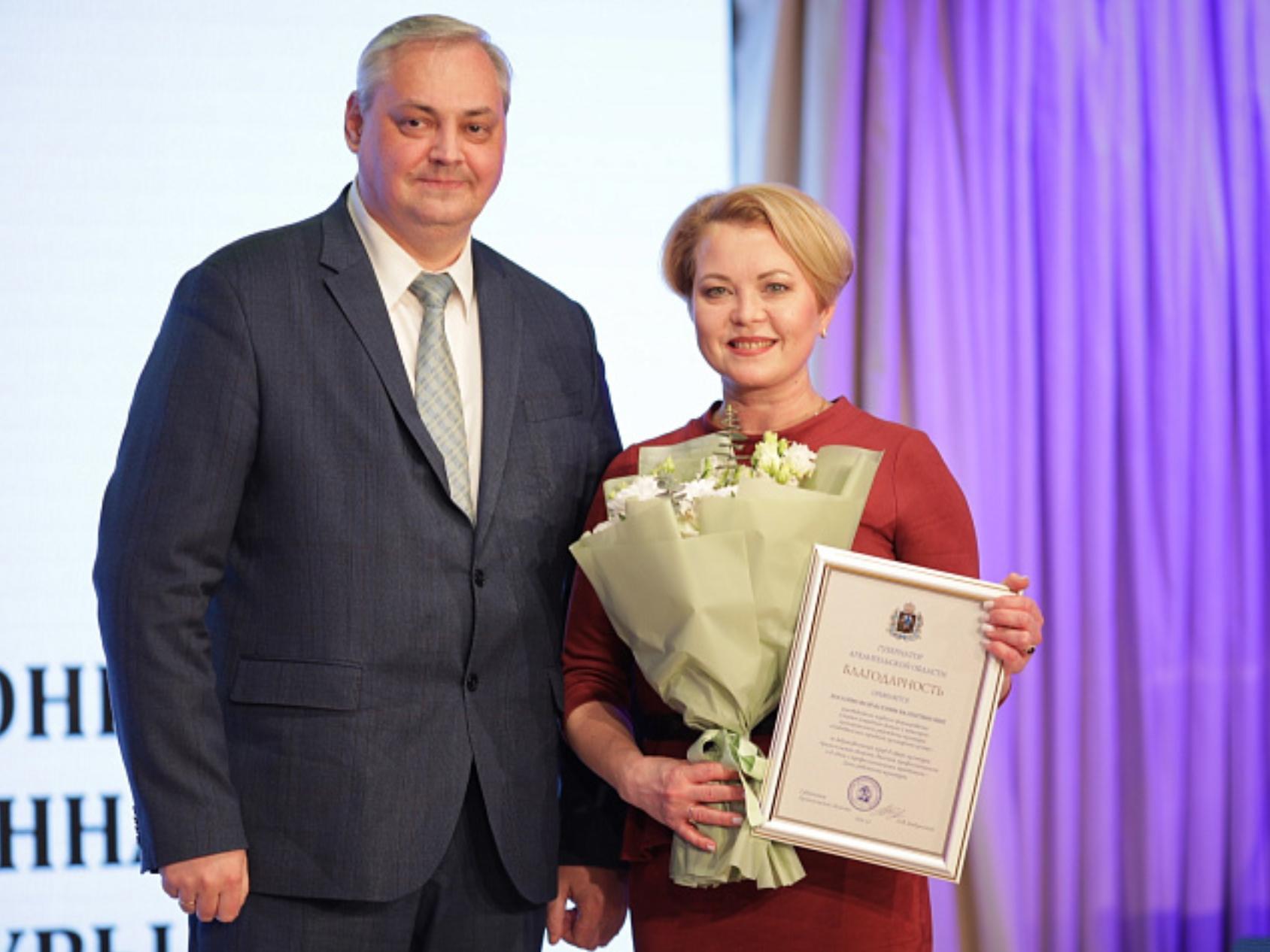 Почётные грамоты губернатора Архангельской области с вручением нагрудного знака вручили четырём деятелям культуры: Светлане Манушкиной, директору культурного центра «Северный» (Архангельск); Юлии Мининой, директору Новодвинского городского культурного центра; Любови Беляевой, заведующей отделом Центральной городской библиотеки имени М. В. Ломоносова (Архангельск); и Владимиру Голованову, преподавателю детской школы искусств № 11 (Каргополь).